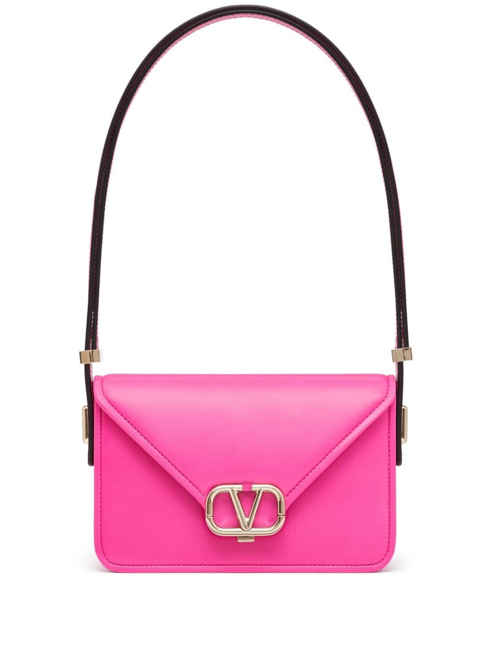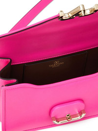 small Letter shoulder bag Valentino Garavani's mini Letter leather bag spotlights the brand's VLogo Signature plaque. The gleaming gold-tone hardware at the centre pops against the vibrant hot-pink hue. Highlights - Hot pink - Calf leather - Smooth grain - Signature v logo plaque - Snap-fit fastening - Long top handle - Adjustable detachable shoulder strap - Internal logo stamp - Main compartment Made in Italy Composition Outer: Calf Leather 100%, Metal 100% Lining: Lambskin 100% SIZE & FIT Measurement WIDTH 7.48 in(19 cm) HEIGHT 4.33 in(11 cm) DEPTH 1.96 in(5 cm) Washing instructions Read Manufacturer Guidelines