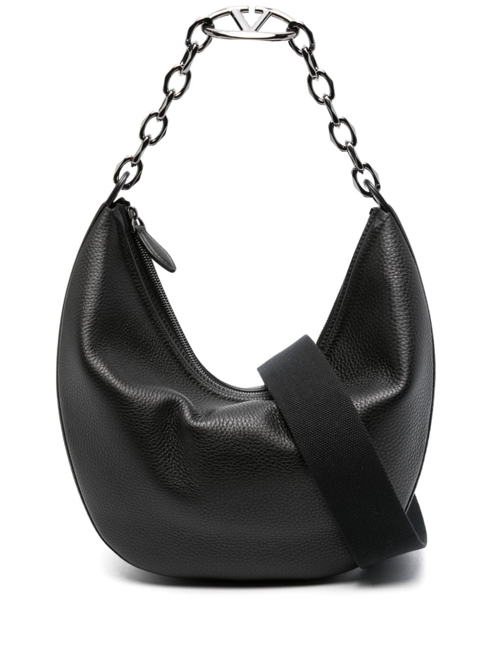 small Moon shoulder bag Highlights - Black - Calf leather - Pebbled texture - Vlogo signature - Logo stamp to the front - Detachable chain-link top handle - Adjustable detachable shoulder strap - Main compartment - Leather lining - Palladium-tone hardware - Top zip fastening - This piece comes complete with a protective dust bag. Made in Italy Composition Outer: Calf Leather 100% SIZE & FIT Model measurements Height 5 ft 10 in(1.78 m) Bust/Chest 31.49 in(80 cm) Hips 37 in(94 cm) Waist 23.62 in(60 cm) Measurement DEPTH 4.33 in(11 cm) HANDLE 5.9 in(15 cm) HEIGHT 9.84 in(25 cm) STRAP 45.27 in(115 cm) WIDTH 11.81 in(30 cm)