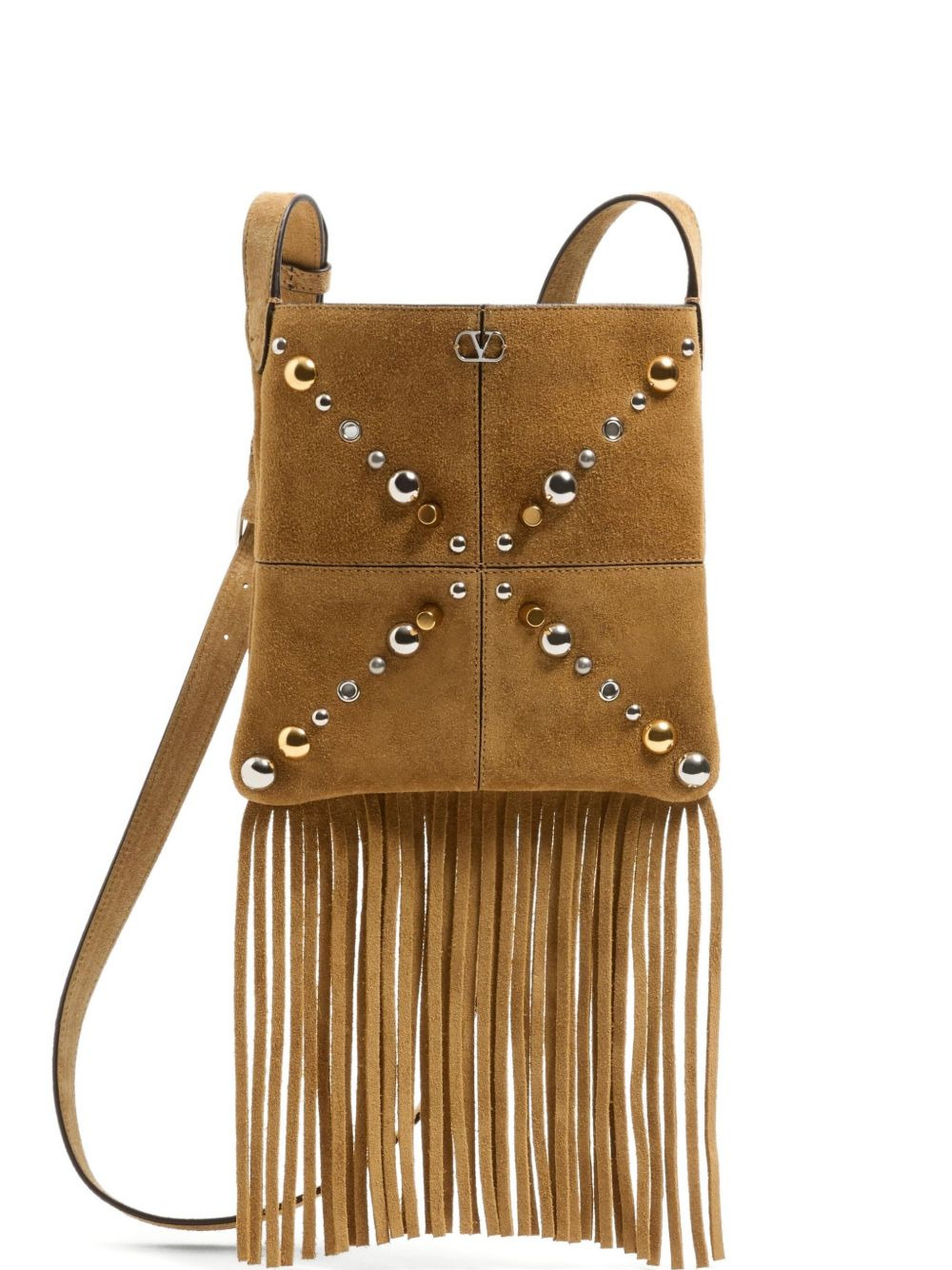 VALENTINO GARAVANI NELLCÔTE SMALL SHOULDER BAG IN SUEDE WITH FRINGES