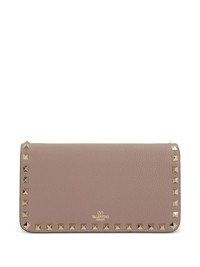 Rockstud clutch bag Adorned with gold-tone Rockstuds, a brand embellishment that has become synonymous with Valentino Garavani since 2010, this crossbody bag is crafted in a sleek leather construction. Highlights - Powder - Leather - Gold-tone rockstud embellishment - Chain link shoulder strap - Gold-tone logo lettering - Magnetic fastening - Internal zip pocket - Internal logo patch Made in Italy Composition Outer: Calf Leather 100%, Metal 100% Lining: Calf Leather 100%, Polyester 100%, Viscose 100% SIZE & FIT Measurement DEPTH 1.96 in(5 cm) WIDTH 7.87 in(20 cm) HEIGHT 4.33 in(11 cm) STRAP 23.62 in(60 cm) Washing instructions Read Manufacturer Guidelines