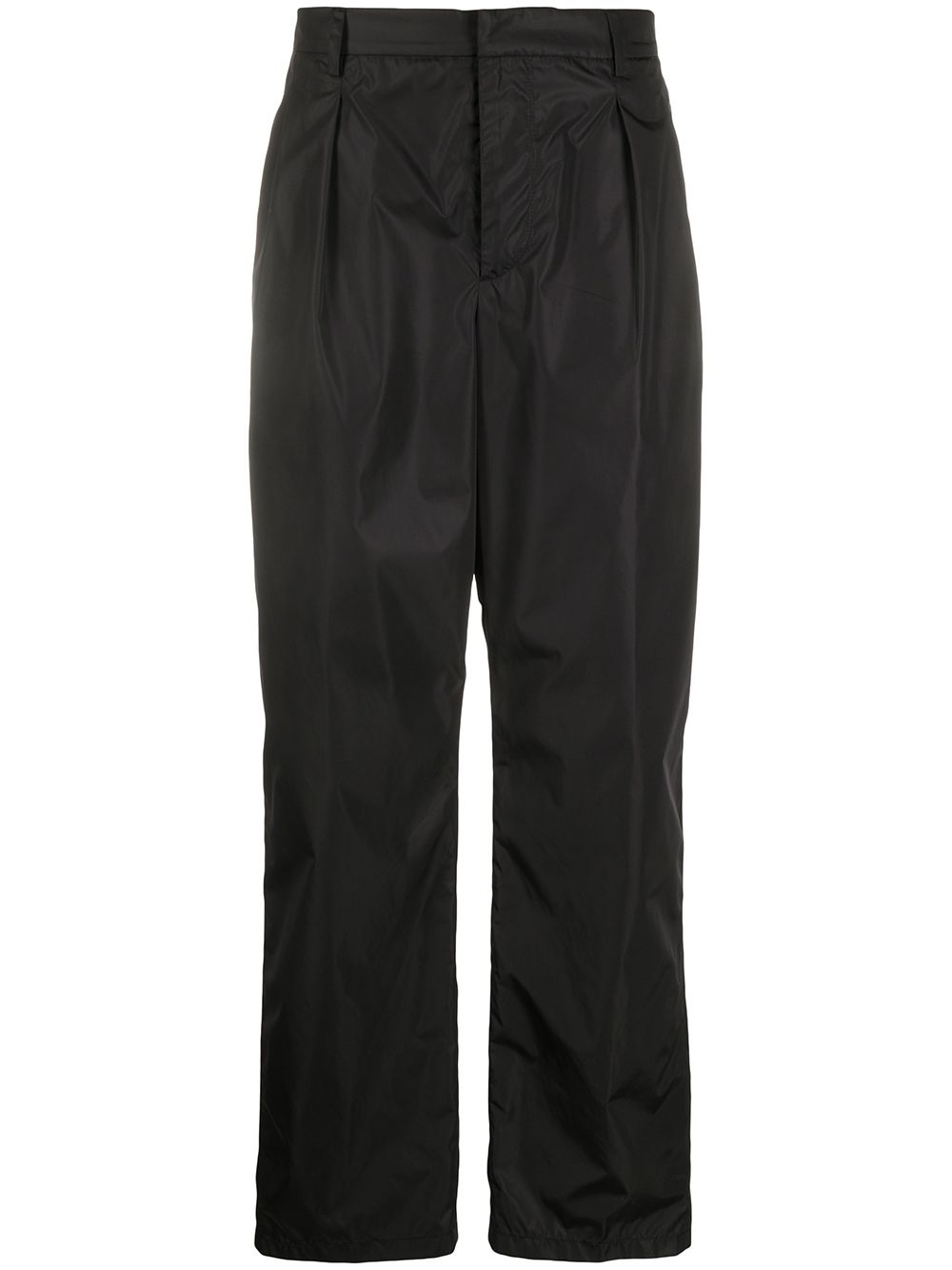 straight-leg nylon trousers Nail that smart/casual brief in these straight-leg nylon trousers from Valentino Garavani. Designed with front pleats and a logo print to the back, these laid-back pair could save hours of last-minute try-ons. Highlights - Valentino ready to wear - Black - Wide straight-leg - Logo print to the back - Front pleats - Belt loops - Button and concealed fly fastening - Two side slit pockets - Two rear welt pockets Made in Italy Composition Polyamide 100% SIZE & FIT Model measurements Height 6 ft 2 in(1.87 m) Bust/Chest 38.18 in(97 cm) Hips 36.61 in(93 cm) Waist 29.13 in(74 cm) FittingInformation This piece fits true to size. We recommend you get your regular size Designed for a slim fit at the waist and loose over the leg Made with a lightweight non-stretch fabric Washing instructions Read Manufacturer Guidelines