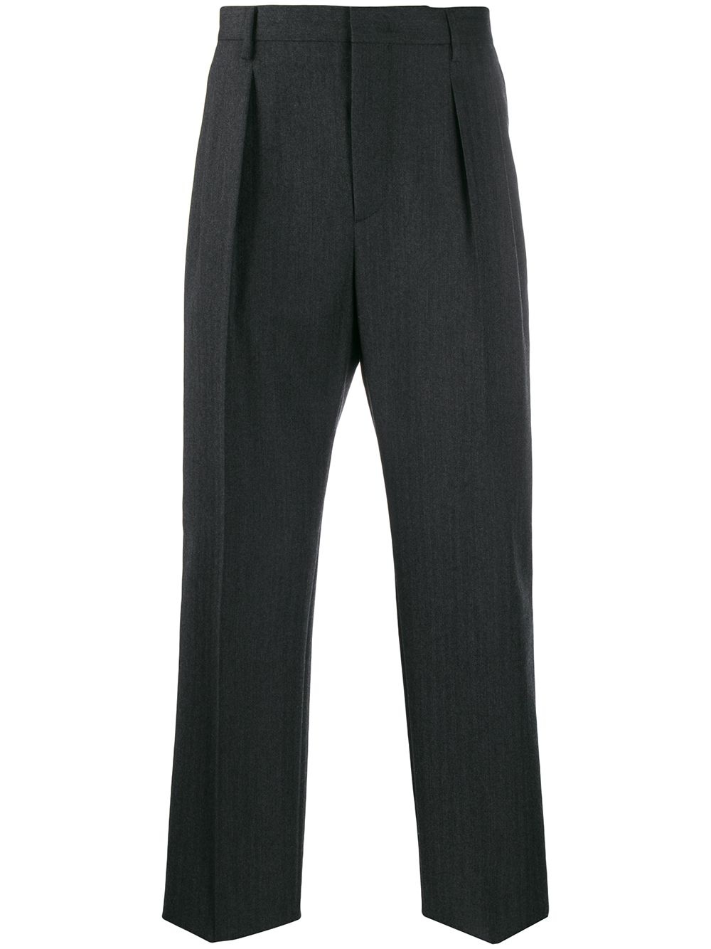 straight leg tailored trousers The Maison Valentino plays a major role in the luxury division through tradition and innovation, a necessary combination for a creative industry that generates the sense of beauty, as showcased by these dark grey cotton and wool straight leg tailored trousers. Featuring a concealed front fastening, side pockets, back pockets, belt loops and a pleated detail at the front. Made in Italy Composition Lining: Cotton 100% Outer: Wool 100% SIZE & FIT Model measurements Height 6 ft 1 in(1.85 m) Bust/Chest 37.79 in(96 cm) Hips 37.4 in(95 cm) Waist 30.7 in(78 cm)