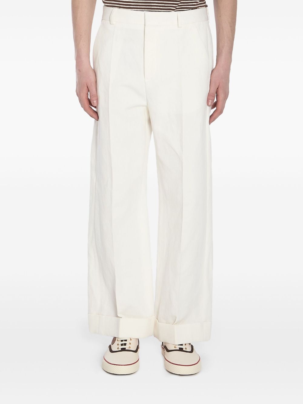 straight-leg trousers Highlights - White - Concealed front button, hook and zip fastening - Two side inset pockets - Two rear welt pockets - Belt loops Made in Italy Composition Cotton 64%, Linen/Flax 30%, Fabric 6%
