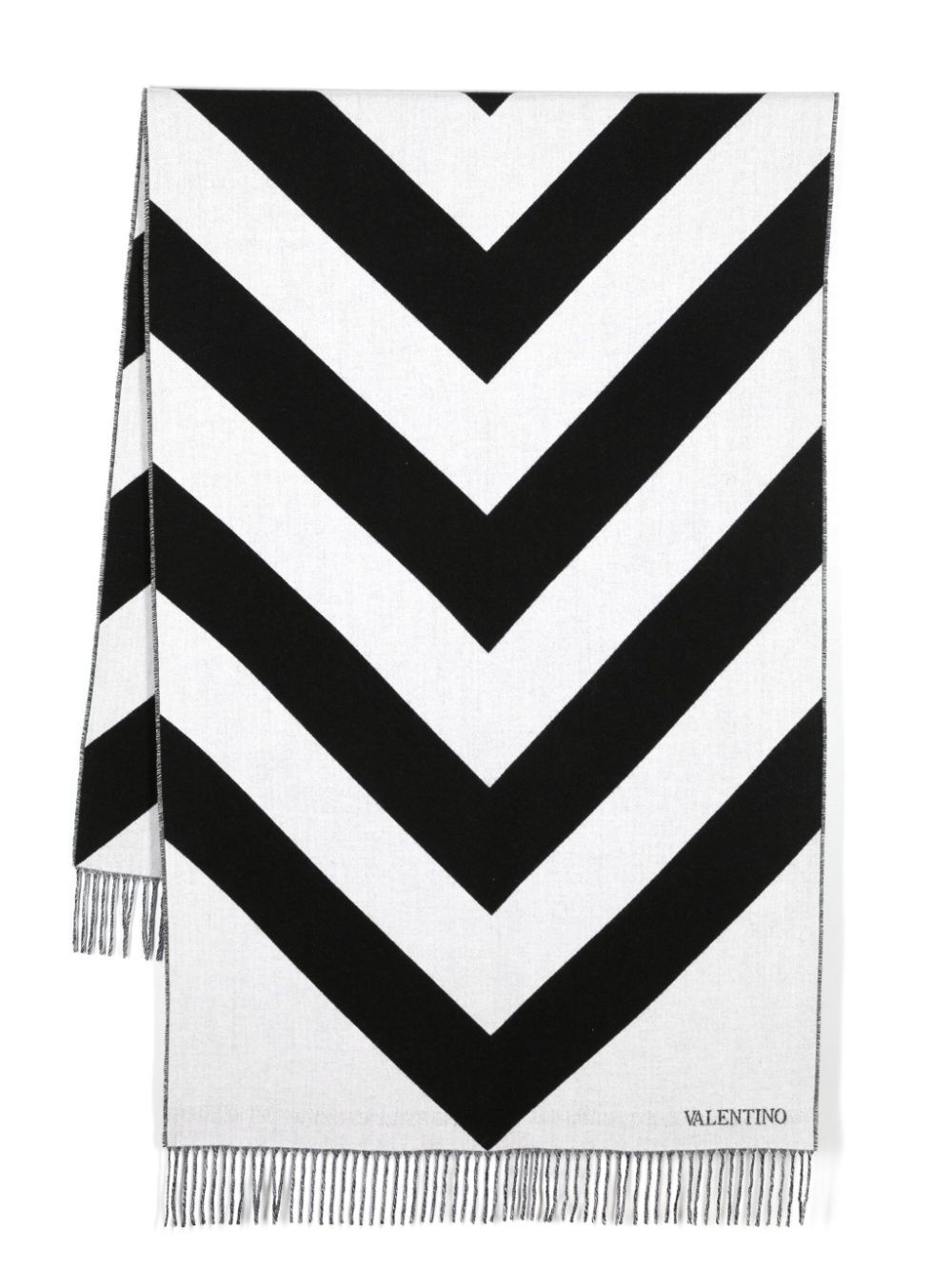 Strhype fringed scarf Highlights - Black/white - Wool-cashmere blend - Diagonal stripe pattern - Knitted construction - Logo print to the front - Fringed edge - Wraparound style Made in Italy Composition Virgin Wool 54%, Cashmere 46% SIZE & FIT Measurement LENGTH 78.74 in(200 cm) WIDTH 27.55 in(70 cm)