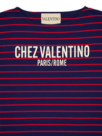 striped logo-print T-shirt Highlights - Valentino ready to wear - Blue - Red striped-pattern - Long sleeves - Crew neck - Logo print - Cotton Made in Italy Composition Cotton 100% Washing instructions Read Manufacturer Guidelines