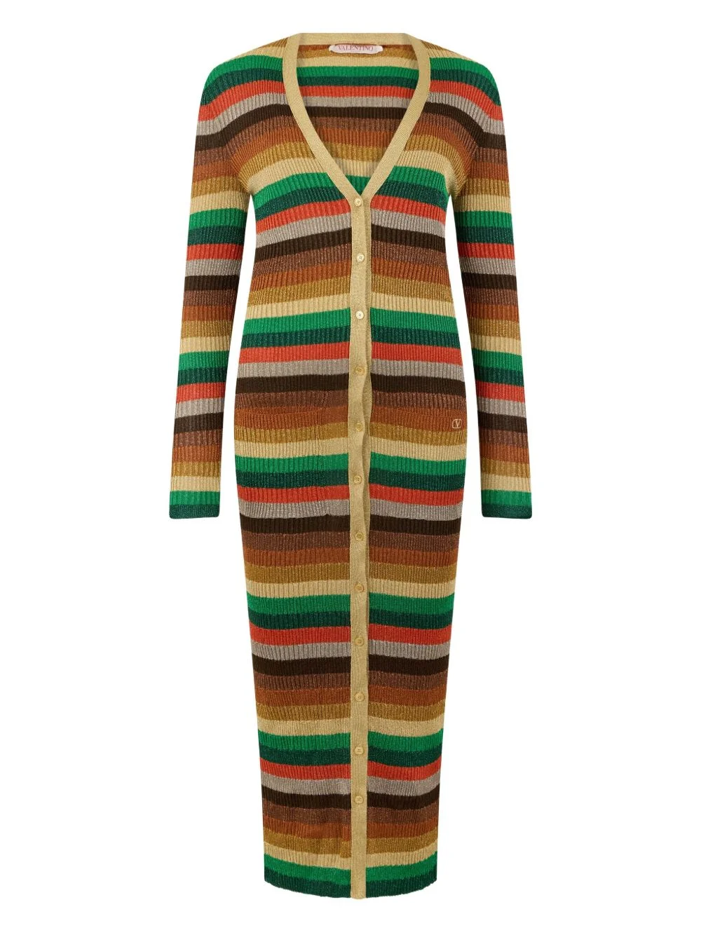 striped-pattern button cardigan Highlights - Gold, multicoloured - Striped pattern - Button fastening - Ribbed knit - Long sleeves - V-neck Made in Italy Composition Fabric 100% Washing instructions Read Manufacturer Guidelines