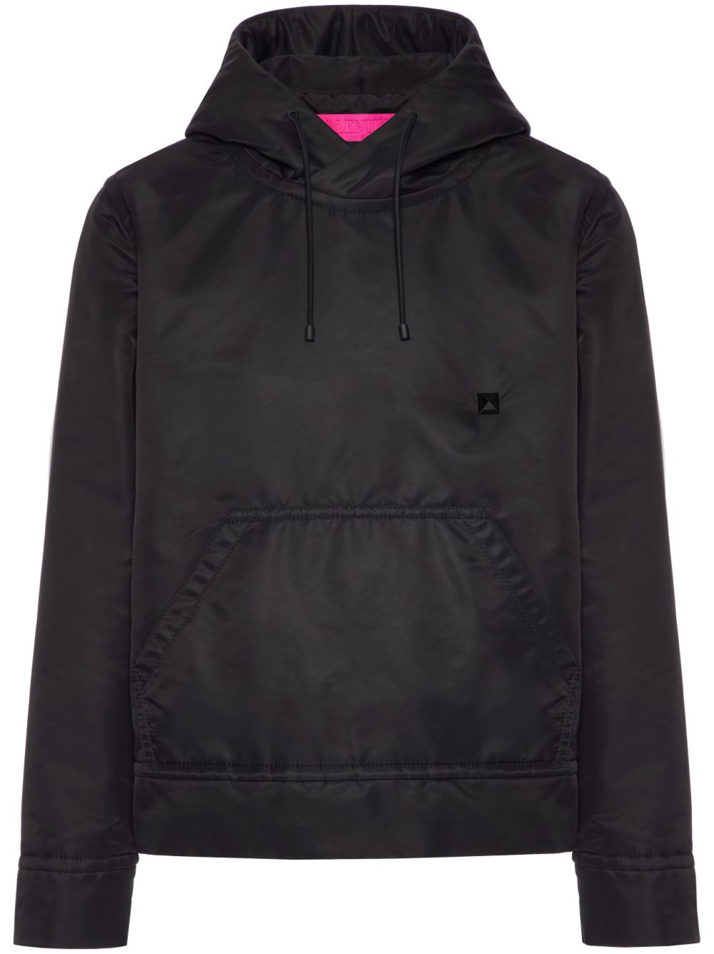 stud-detail padded hoodie Valentino Garavani's collection is imagined for AW22 in monochrome pieces as a 'manifestation of the unconscious and a liberation from the need for realism.' Designed with technical fabric for a sportswear-inspired look, this hoodie is cut for a relaxed fit and adorned with a tonal Roman Stud at the chest. Highlights - Valentino ready to wear - Black - Cotton blend - Technical jersey - Signature roman stud detailing - Drawstring hood - Front pouch pocket - Long sleeves - Straight hem - The full look includes valentino garavani accessories. Made in Italy Composition Lining: Polyester 100% Outer: Polyamide 100% SIZE & FIT Measurement CHEST 45.66 in(116 cm) LENGTH 26.77 in(68 cm) SLEEVE LENGTH 25 in(63.5 cm) Washing instructions Read Manufacturer Guidelines