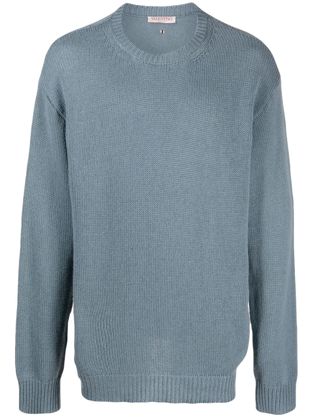 stud-embellished cashmere jumper Valentino Garavani takes an uncharacteristically subtle approach to design with this cashmere jumper. Cut in a classic crew neck silhouette, it is presented in a stone-blue hue and accented with ribbed trims and a One stud detail to the rear. Highlights - Valentino ready to wear - Light blue - Cashmere - Knitted construction - one stud detail to the rear - Crew neck - Long sleeves - Ribbed trim - Straight hem Made in Italy Composition Cashmere 100% SIZE & FIT Model measurements Height 6 ft 0 in(1.84 m) Bust/Chest 36.22 in(92 cm) Hips 35.43 in(90 cm) Waist 26.77 in(68 cm) FittingInformation Designed to be unstructured, offering a loose fit throughout Made with a midweight knit, this piece offers some stretch This piece fits true to size – take your usual size