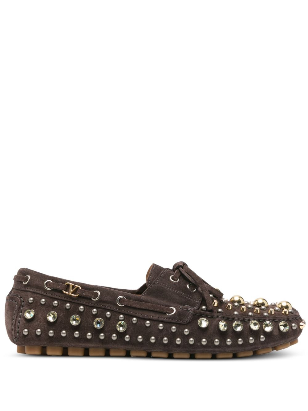 studded suede boat shoes Highlights - Dark brown - Studded - Front lace-up detail - Flat sole Imported Composition Lining: Leather 100% Outer: Suede 100% Sole: Rubber 100%