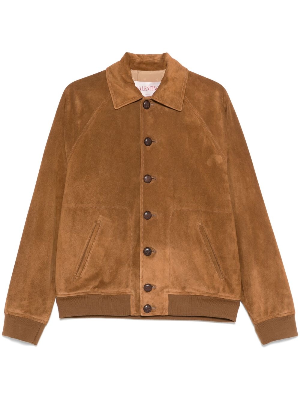 suede bomber jacket Highlights - Chocolate brown - Front button fastening - Two front welt pockets - Long sleeves Made in Italy Composition Leather 100%, Acetate 75%, Silk 25% SIZE & FIT Model measurements Height 6 ft 2 in(1.87 m) Bust/Chest 36.41 in(92.5 cm) Hips 35.43 in(90 cm) Waist 29.52 in(75 cm) FittingInformation Designed for a regular fit, allowing for a comfortably loose fit throughout the body The ribbed hem offers a close, comfortable fit Suede leather has a soft and treated construction offering some flexibility