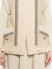 tassel-embellished waistcoat Highlights Imported Composition Lamb Fur 100%, Virgin Wool 100%, Silk 100%, Viscose 75%, Polyester 65%, Metallised Fibres 35%, Wool 25% SIZE & FIT Model measurements Height 5 ft 9 in(1.75 m) Bust/Chest 34.64 in(88 cm) Hips 36.61 in(93 cm) Waist 26.37 in(67 cm)