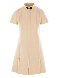 tasselled embroidered mini dress Highlights - Almond beige - Concealed rear zip fastening - Bow detailing - High neck - Short sleeves Imported Composition Viscose 92%, Silk 8%