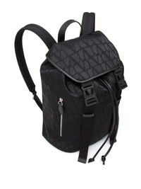 Iconographe drawstring backpack The Iconographe pattern - a reinterpretation of the house's VLogo Signature - takes centre stage in Valentino Garavani's AW23 collection. This nylon backpack showcases the new motif in a classic black colourway. Highlights - Black - Black iconographe pattern - Vlogo signature - Palladium-tone hardware - Single top handle - Two adjustable shoulder straps - Main compartment - Drawstring fastening - Buckle fastening - Side zip-fastening pocket Made in Italy Composition Outer: Calf Leather 100%, Metal 100%, Polyamide 70%, Polyester 30% Lining: Calf Leather 100%, Polyester 100% SIZE & FIT Measurement DEPTH 6.29 in(16 cm) HEIGHT 14.56 in(37 cm) WIDTH 12.99 in(33 cm)