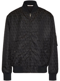 Toile Iconographe bomber jacket Repurposed from the label’s ‘70s archives, Valentino Garavani's Toile Iconographe monogram subtly adorns this bomber jacket, imagined in a black tonal design for AW23. Highlights - Valentino ready to wear - Black - Vlogo signature - Round neck - Front zip fastening - Long sleeves - Elasticated hem - The full look includes valentino garavani accessories. Made in Italy Composition Outer: Polyamide 100% Lining: Polyester 100% Washing instructions Read Manufacturer Guidelines