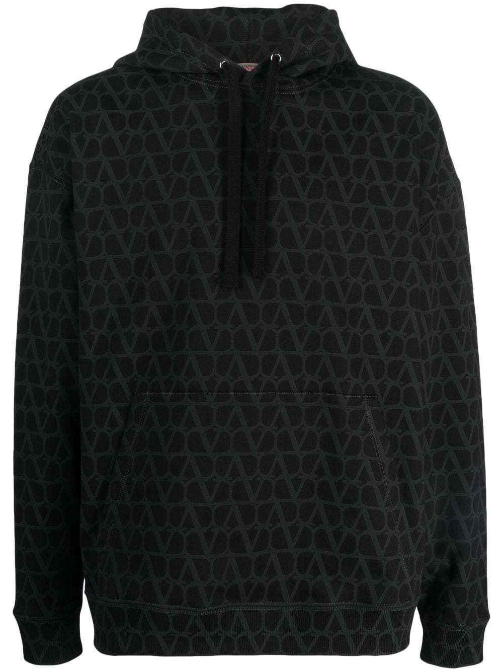 Toile Iconographe-print cotton hoodie Valentino Garavani pays homage to its house codes in the design of this hoodie. Cut from cotton, it’s decorated with a Toile Iconographe monogram that’s repurposed from the label’s ‘70s archives. Highlights - Valentino ready to wear - Black - Cotton - All-over logo print - Drawstring hood - Front pouch pocket - Drop shoulder - Long sleeves - Ribbed cuffs and hem - Straight hem Made in Italy Composition Cotton 100% SIZE & FIT Model measurements Height 6 ft 2 in(1.87 m) Bust/Chest 32.28 in(82 cm) Hips 33.85 in(86 cm) Waist 25.98 in(66 cm) FittingInformation Designed to be unstructured, offering a loose fit throughout Made from a midweight non-stretch fabric, this piece offers minimal elasticity when worn This piece fits true to size – take your usual size