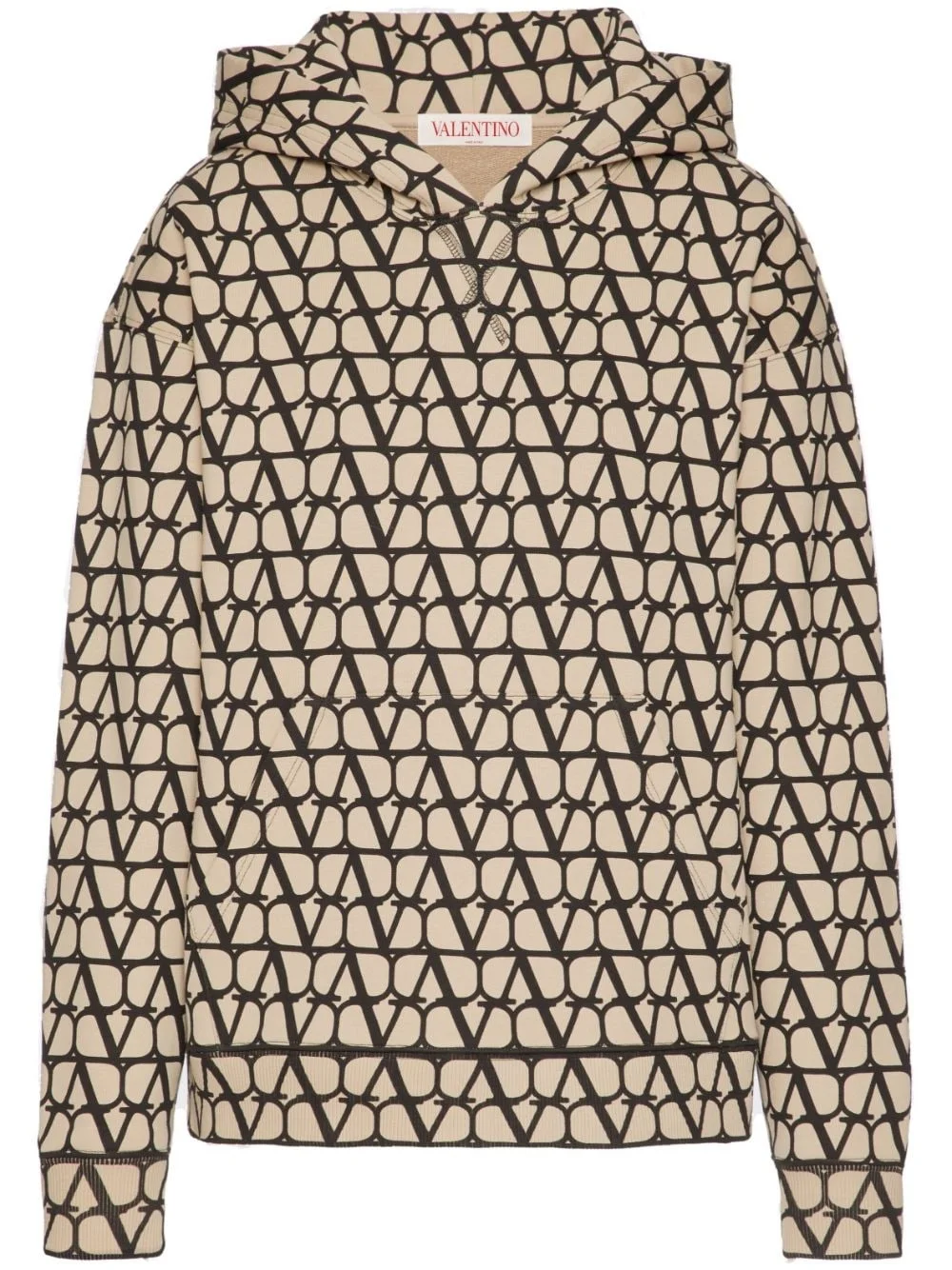 Toile Iconographe jersey hoodie Valentino Garavani pays homage to its house codes in the design of this hoodie. Cut from cotton, it’s decorated with a Toile Iconographe monogram that’s repurposed from the label’s ‘70s archives. Highlights - Valentino ready to wear - Beige/black - Cotton - Toile iconographe pattern - Drawstring hood - Long sleeves - Front pouch pocket - Unlined - Straight hem - The full look includes valentino garavani accessories. Made in Italy Composition Cotton 100% Washing instructions Read Manufacturer Guidelines