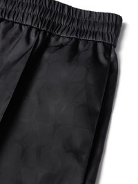 Toile Iconographe straight-leg trousers Characterised by a tonal pattern of Valentino Garavani's Signature VLogo, these straight-leg trousers are held with a comfortable elasticated waist, lending a casual twist. Highlights - Valentino ready to wear - Black - Monogram pattern - Vlogo signature - Pressed crease - Elasticated waistband - Two rear jetted pockets - Straight leg Made in Italy Composition Lining: Polyester 100% Outer: Polyamide 100% Washing instructions Read Manufacturer Guidelines