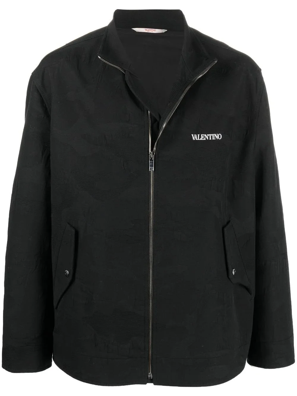 tonal camouflage-print jacket Highlights - Valentino ready to wear - Black - Cotton - Tonal camouflage-print - Embroidered logo at the chest - High neck - Front zip fastening - Long sleeves - Two side flap pockets - Straight hem Made in Italy Composition Outer: Cotton 64%, Viscose 36% Lining: Cotton 100%, Polyester 100% SIZE & FIT Model measurements Height 6 ft 2 in(1.89 m) Bust/Chest 36.22 in(92 cm) Hips 37.79 in(96 cm) Waist 29.52 in(75 cm) Measurement SLEEVE LENGTH 24.8 in(63 cm) Shoulder Width 7.08 in(18 cm) LENGTH 29.52 in(75 cm) FittingInformation This piece fits true to size. We recommend you get your regular size Cut for a loose fit Made with a mid-weight non-stretch fabric Washing instructions Read Manufacturer Guidelines