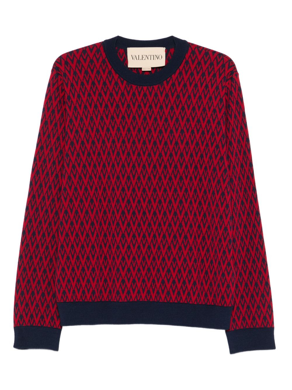 Toute La V sweater Highlights - Red - Geometric pattern - Crew neck - Long sleeves - Ribbed cuffs - Ribbed hem Made in Italy Composition Virgin Wool 100% SIZE & FIT Model measurements Height 6 ft 1 in(1.85 m) Bust/Chest 35.82 in(91 cm) Hips 37.79 in(96 cm) Waist 29.13 in(74 cm) FittingInformation Designed for a relaxed fit, this piece allows for comfort and movement when worn Made with a midweight knit, this piece offers some stretch Washing instructions Hand Wash