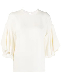 tulip sleeve blouse Valentino’s designer continues to look at every piece with a couturier’s eye, presenting immaculately-tailored accessories with a feminine flair. Made in Italy, this white silk tulip sleeve blouse from Valentino features a round neck, dropped shoulders, three-quarter length tulip sleeves, a loose fit and a straight hem. Made in Italy Composition Silk 100% SIZE & FIT Model measurements Height 5 ft 10 in(1.77 m) Bust/Chest 35.03 in(89 cm) Hips 35.03 in(89 cm) Waist 23.62 in(60 cm) FittingInformation This piece fits true to size. We recommend you get your regular size Cut for a loose fit Made with a lightweight fabric Washing instructions Read Manufacturer Guidelines