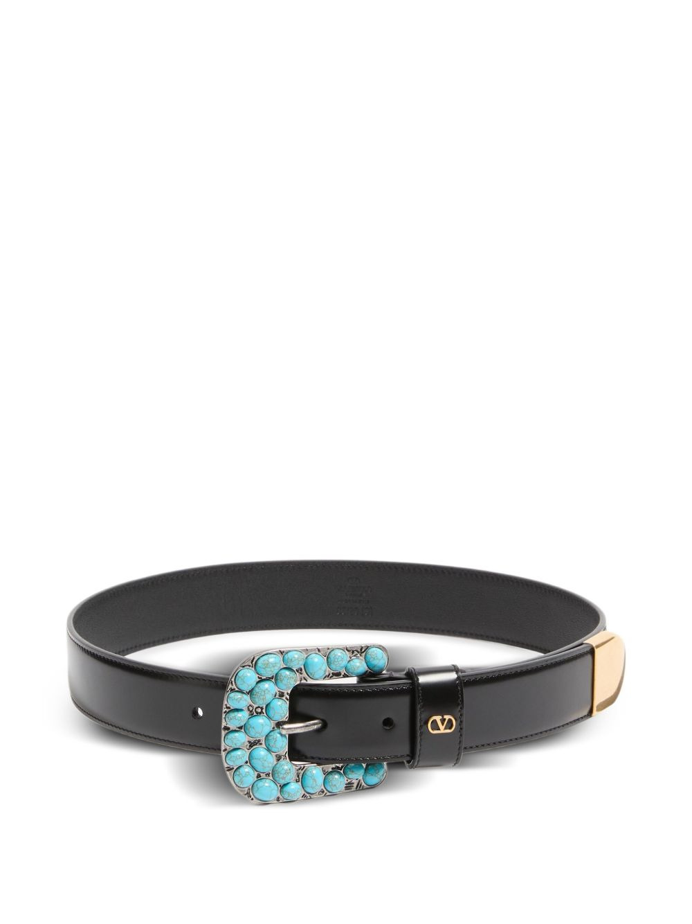 VLogo Signature belt Highlights - Black - Turquoise stone detailing - Rounded buckle - Vlogo signature plaque - Adjustable fit Made in Italy Composition Outer: Calf Leather 100%, Metal 100%, Gemstone 100% Lining: Calf Leather 100% SIZE & FIT Measurement WIDTH 1.18 in(3 cm)