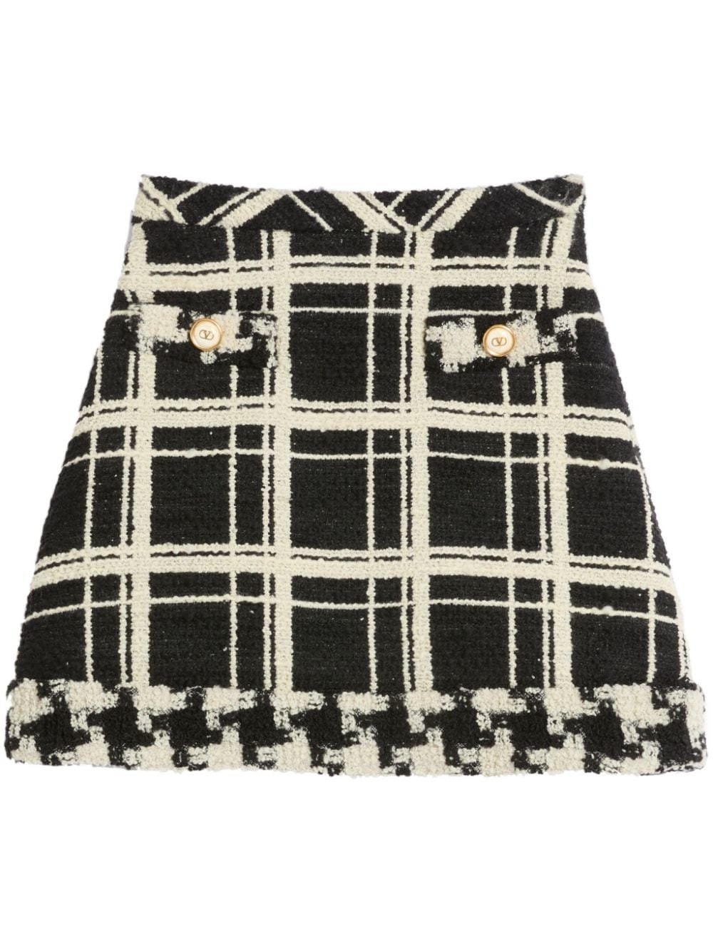checked tweed mini skirt Highlights - Black/white - Virgin wool blend - Tweed - Check print - Side zip fastening - Mid-rise - Faux pocket detail - Full lining - A-line - Thigh-length - The model is 176 cm / 5'9'' tall and wears an italian size 40 Made in Italy Composition Outer: Virgin Wool 92% Lining: Acetate 74%, Silk 26%, Polyamide 8% Washing instructions Read Manufacturer Guidelines