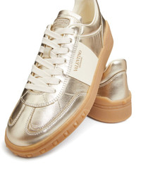 Upvillage sneakers Highlights - Gold-tone - Calf leather - Laminated finish - Logo print to the side - Logo patch at the tongue - Panelled design - Round toe - Front lace-up fastening - Flat contrasting rubber sole Made in Italy Composition Leather 100% Washing instructions Read Manufacturer Guidelines