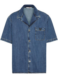 V-detail denim bowling shirt