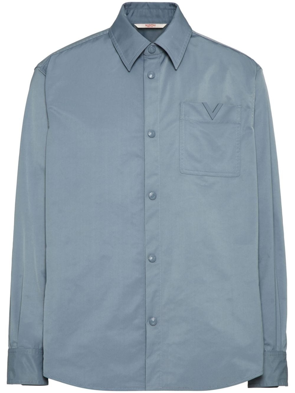 V-detail shirt jacket Highlights - Steel blue - Vlogo patch - Classic collar - Long sleeves - Front button fastening - Chest patch pocket - Two side welt pockets Made in Italy Composition Outer: Polyester 64%, Elastomultiester 36% Lining: Polyester 100%