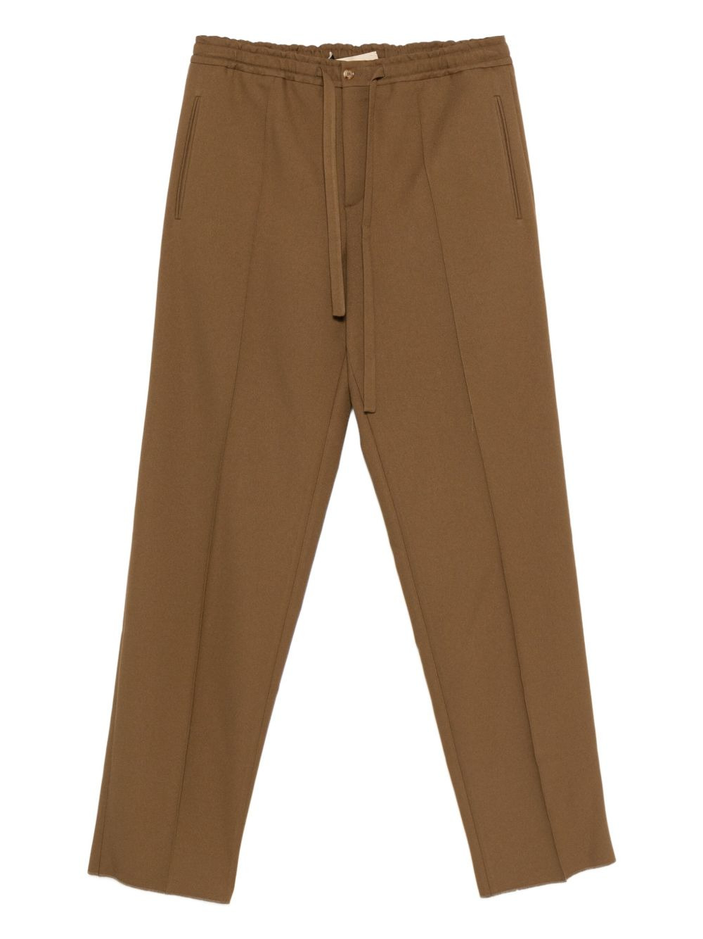 drawstring-waist trousers Highlights - Caramel brown - Button fastening - Two side slit pockets - Two rear welt pockets - Seam detailing Made in Italy Composition Lining: Cotton 100% Outer: Polyester 100% Washing instructions Machine Wash