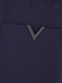 VGold track pants Highlights - Valentino ready to wear - Navy blue - Technical jersey - Vgold detail - Raised seam detail - Elasticated waistband with internal drawstring - Two side inset pockets - Rear patch pocket - Straight leg Made in Italy Composition Nylon 56%, Cotton 44%