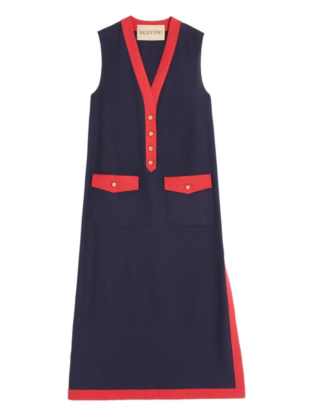 linen midi dress Highlights - Indigo blue - Front button fastening - Semi-sheer construction - Contrasting border - Two side flap pockets - Sleeveless Made in Italy Composition Viscose 86%, Linen/Flax 14%