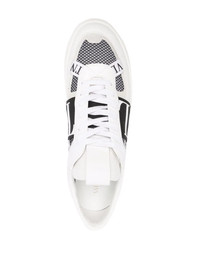VL7N panelled sneakers Reflecting Valentino Garavani's bold approach to footwear, the VL7N sneakers present a panelled design with subtle mesh detailing. With a white background, the pair is crafted from leather and features logo printed black straps towards the side. Made in Italy Composition Outer: Calf Leather 100%, Polyamide 68%, Polyester 30%, Polyurethane 2% Lining: Calf Leather 100% Sole: Plastic 100% SIZE & FIT Measurement Sole height 1.18 in(3 cm) HEEL 1.37 in(3.5 cm) Washing instructions Read Manufacturer Guidelines