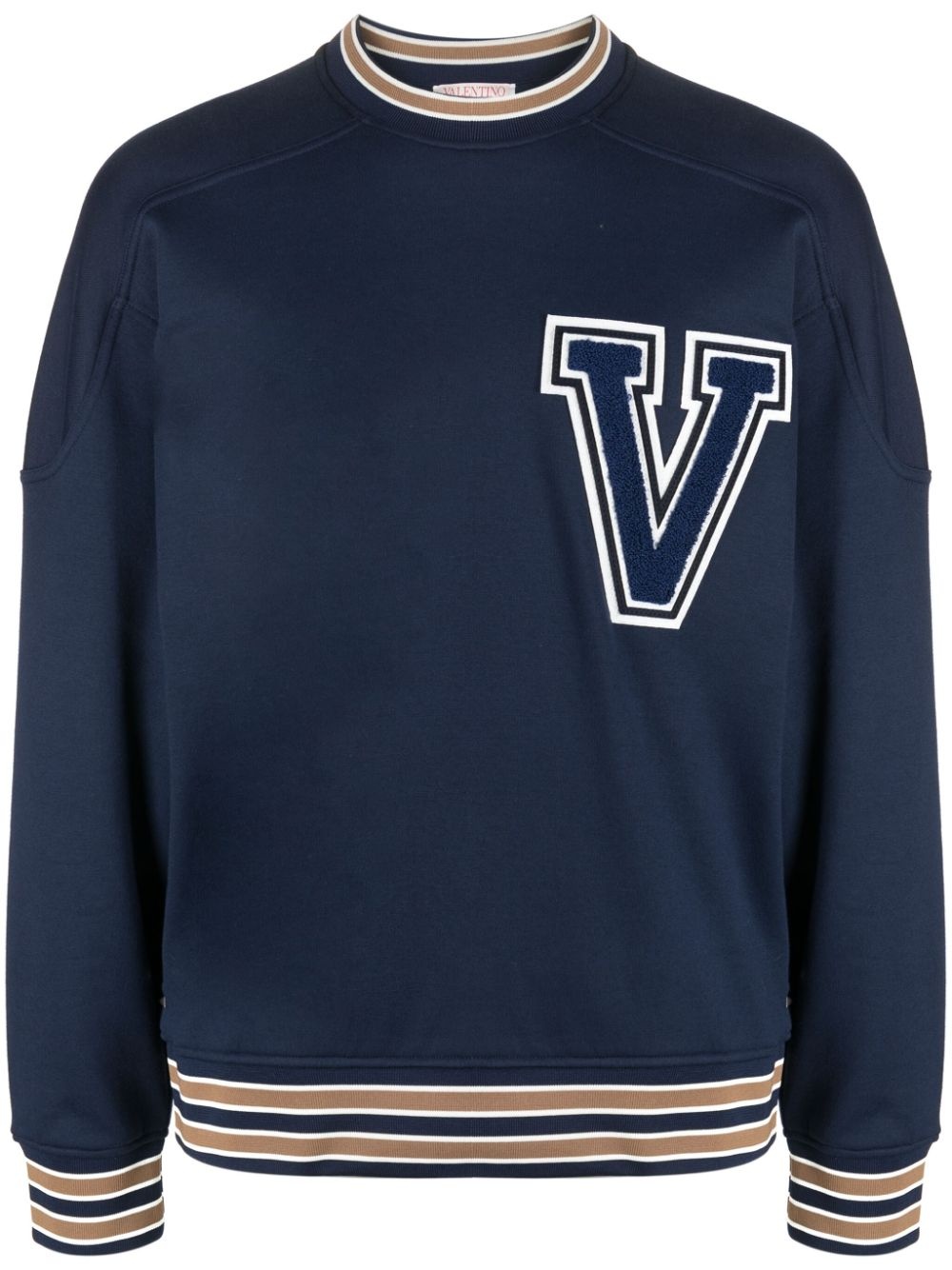 VLogo crew-neck sweatshirt Accented with Valentino Garavani's logo embroidery at the chest, this indigo-blue long-sleeve sweatshirt exhibits the brand's penchant for logo detailing. Highlights - Indigo blue - Animalier brown - Stripe trim - Logo patch at the chest - Crew neck - Drop shoulder - Long sleeves - Straight hem Made in Italy Composition Polyester 100%, Cotton 94%, Acrylic 50%, Wool 50%, Polyamide 6% SIZE & FIT Model measurements Height 6 ft 2 in(1.88 m) Bust/Chest 36.61 in(93 cm) Hips 37.79 in(96 cm) Waist 28.74 in(73 cm) FittingInformation Designed for a relaxed fit, this piece allows for comfort and movement when worn Made from a midweight non-stretch fabric, this piece offers minimal elasticity when worn This piece fits true to size – take your usual size Washing instructions Dry Clean Only
