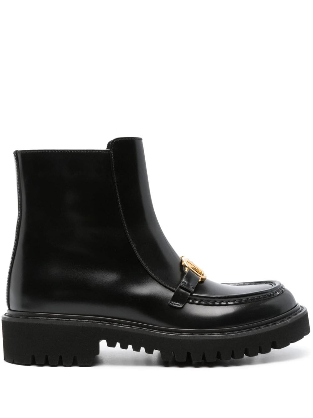 VLogo leather flat boots Highlights - Black - Calf leather - Smooth grain - Round toe - Piped-trim detailing - Vlogo signature chain detail - Branded leather insole - Rubber sole - Ankle-length - Side zip fastening Made in Italy Composition Leather 100% SIZE & FIT Measurement CIRCUMFERENCE 9.44 in(24 cm) HEEL 1.57 in(4 cm) HEIGHT 5.31 in(13.5 cm) Sole height 0.78 in(2 cm)