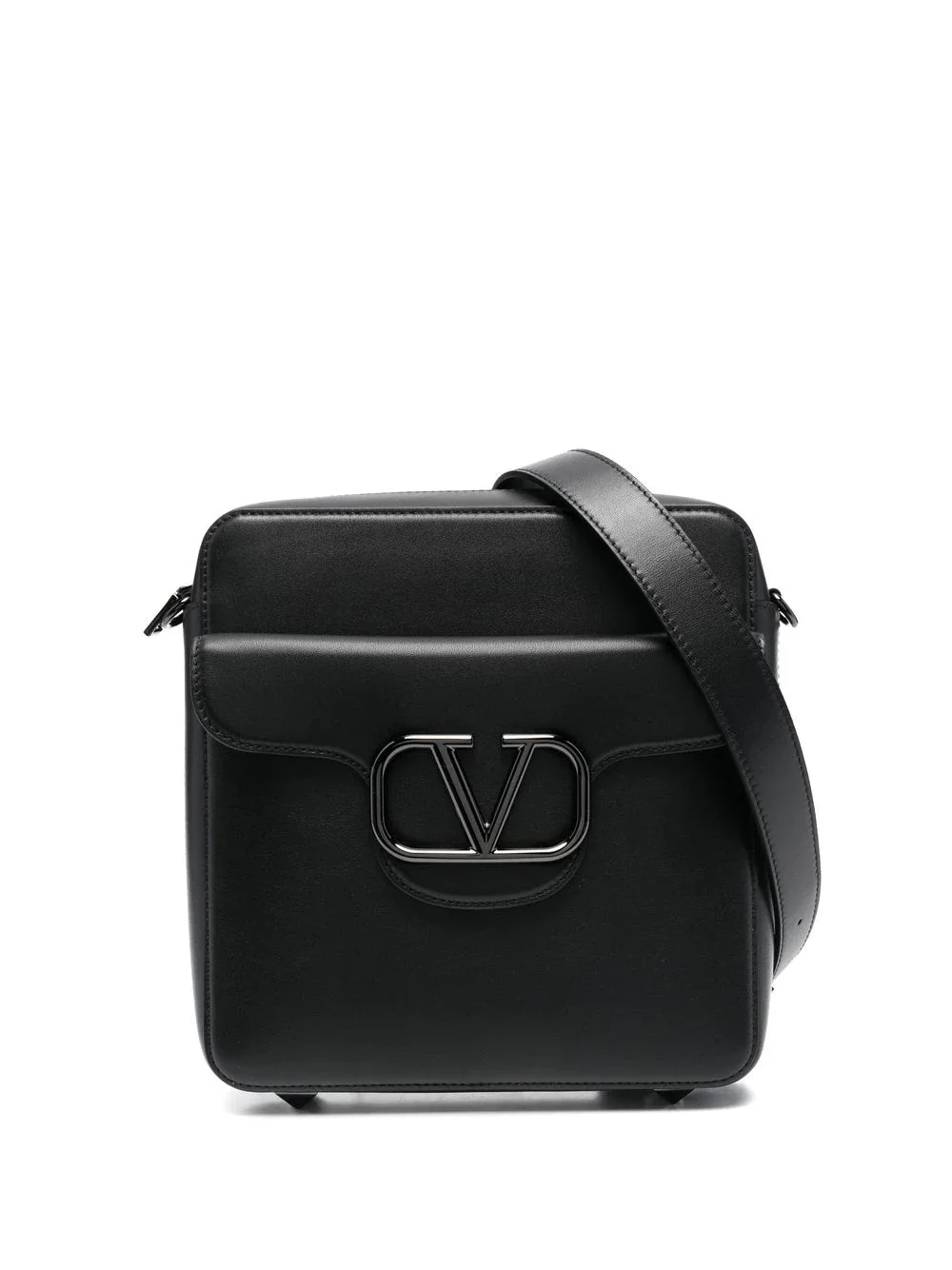 VLogo leather messenger bag Crafted in a boxy leather silhouette, this Valentino Garavani messenger bag is punctuated with a tonal VLogo plaque to its front. The sleek design exhibits the brand's sophisticated Italian style. Made in Italy Composition Outer: Calf Leather 100%, Metal 100% Lining: Lamb Skin 100%, Calf Leather 100% SIZE & FIT Model measurements Height 6 ft 3 in(1.9 m) Bust/Chest 38.18 in(97 cm) Hips 37.79 in(96 cm) Waist 32.67 in(83 cm) Measurement DEPTH 2.36 in(6 cm) HEIGHT 9.84 in(25 cm) WIDTH 9.05 in(23 cm) Washing instructions Read Manufacturer Guidelines