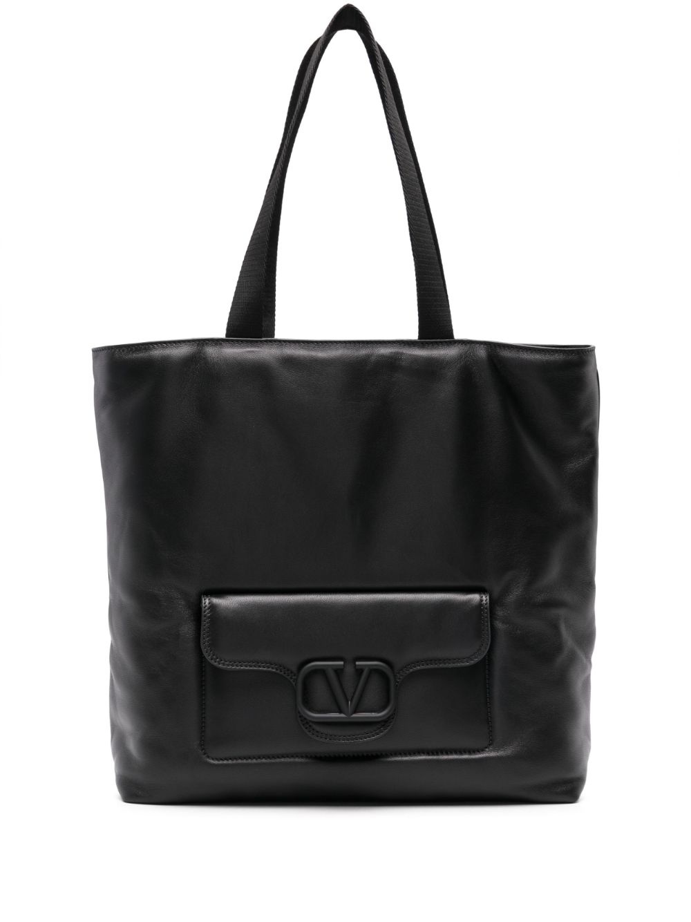 Noir tote bag Highlights - Black - Calf leather - Smooth grain - Vlogo signature - Open top - Two flat top handles - Front flap pocket - Main compartment - Internal zip-fastening pocket - Silver-tone hardware - Full lining - This piece comes complete with a protective dust bag. Made in Italy Composition Outer: Calf Leather 100% SIZE & FIT Model measurements Height 6 ft 2 in(1.89 m) Bust/Chest 39.76 in(101 cm) Hips 37.4 in(95 cm) Waist 29.92 in(76 cm) Measurement DEPTH 3.93 in(10 cm) HANDLE 9.44 in(24 cm) HEIGHT 14.96 in(38 cm) WIDTH 15.74 in(40 cm)