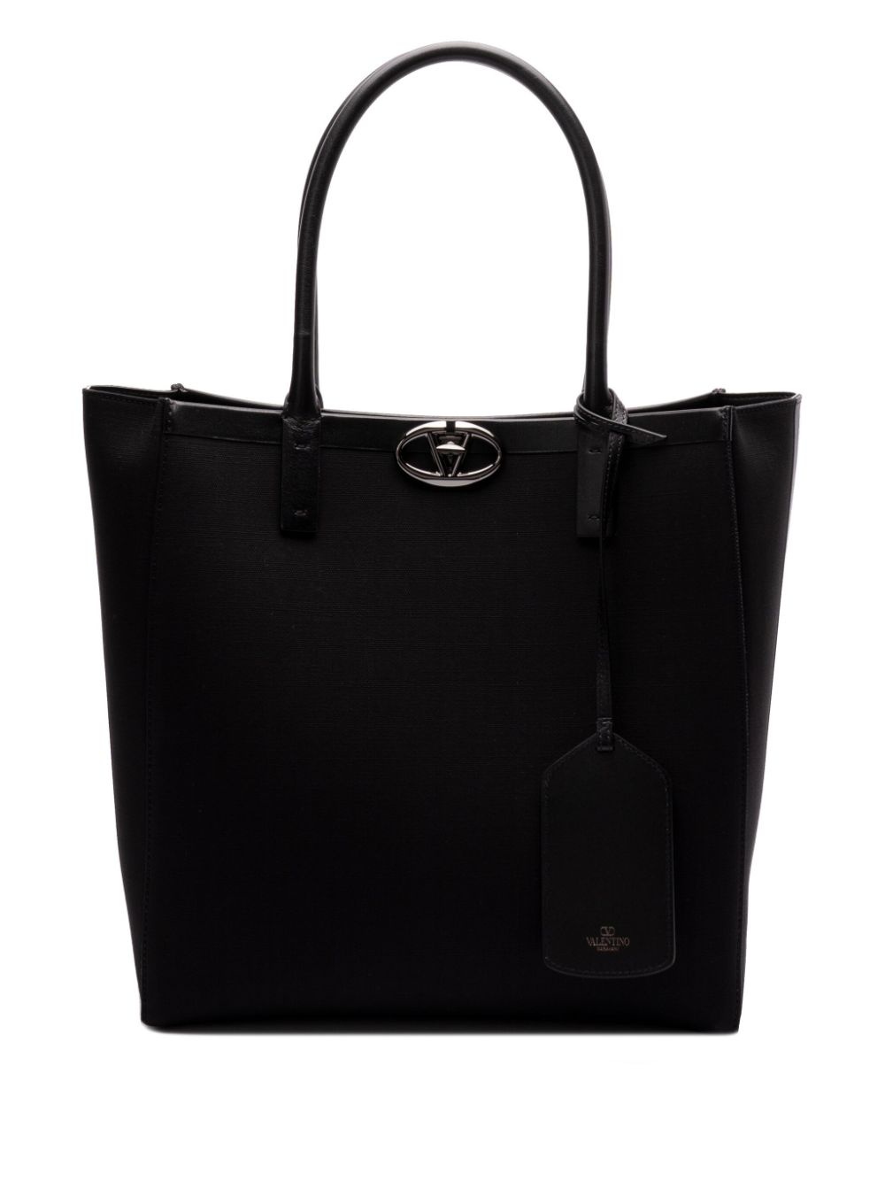 Vlogo lock tote bag Highlights - Black - Cotton - Canvas - Vlogo signature - Flip-lock fastening - Two rolled top handles - Leather tag - Leather trim - Silver-tone hardware Made in Italy Composition Outer: Cotton 100% SIZE & FIT Measurement DEPTH 5.9 in(15 cm) HANDLE 7.87 in(20 cm) HEIGHT 13.38 in(34 cm) WIDTH 12.59 in(32 cm)