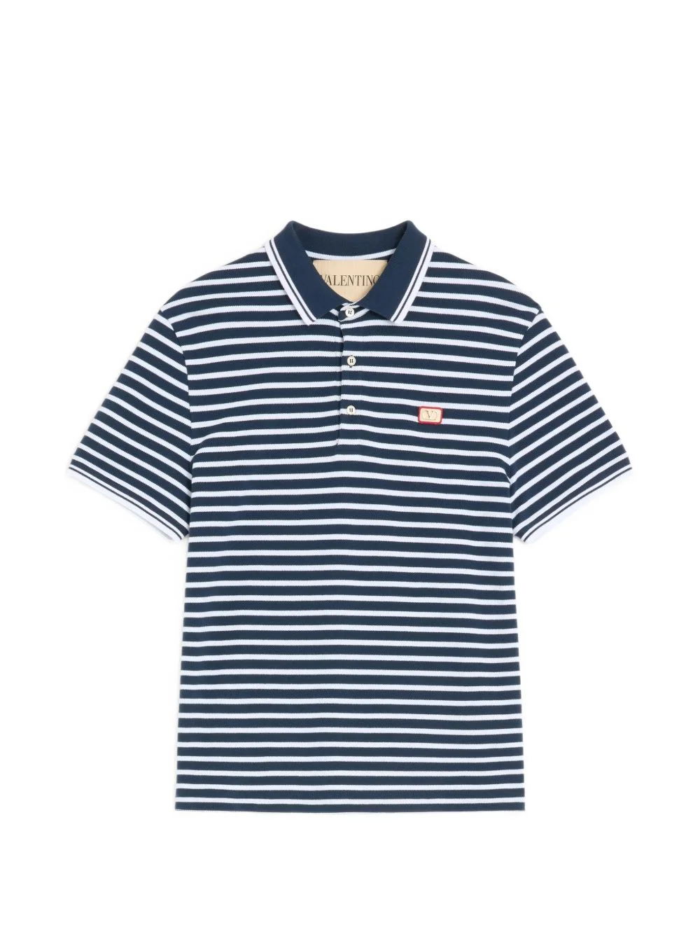 VLogo-patch polo shirt Highlights - Navy blue - Stripe - Button fastening - Short sleeves Made in Italy Composition Cotton 100% Washing instructions Read Manufacturer Guidelines