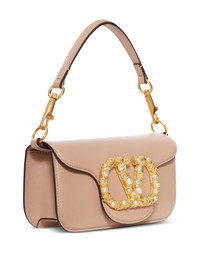 VLogo pearl-embellished leather shoulder bag Highlights - Light beige - Gold-tone logo - Pearl embellishments - Crystal embellishments - Top handle - Clasp fastening Made in Italy Composition Calf Leather 100%