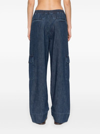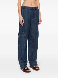 chambray cargo trousers Highlights - Valentino ready to wear - Indigo blue - Denim - Gold-tone logo plaque - Vlogo signature - Elasticated drawstring waistband - Straight leg - Two side slit pockets - Two side cargo pockets - Two rear welt pockets - The model is 176 cm / 5'9'' tall and wears an italian size 40 Made in Italy Composition Outer: Cotton 100% Lining: Polyester 65%, Cotton 35% Washing instructions Machine Wash