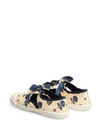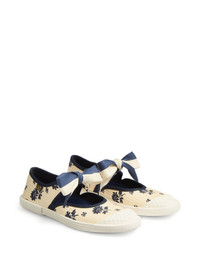 Bay By Bay ballerina sneakers Highlights - Blue/white - Panelled design - All-over floral print - Tie-top fastening - Bow detailing - Round toe - Vlogo signature - Gold-tone logo plaque - Branded insole - Flat sole Made in Italy Composition Outer: Polyester 100%, Metal 100% Lining: Goat Skin 100%, Cotton 52%, Polyester 48% Sole: Rubber 100%