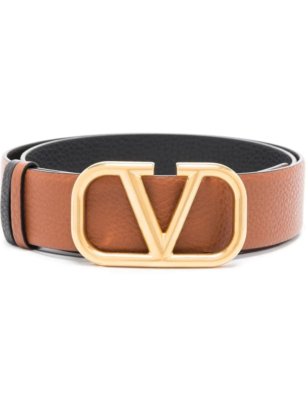 40mm VLogo Signature belt Crafted from soft leather in Italy, this belt from Valentino Garavani's SS22 collection is defined by its reversible design, revealing a deep shade of brown on one side and a solid black tone on the other. An iconic logo motif adorns its gold-tone buckle as a nod to the house's heritage. Highlights - Vlogo reversible leather belt from valentino garavani featuring brown, black, leather, vlogo signature, gold-tone hardware, punched holes, adjustable fit and reversible. Made in Italy Composition Outer: Calf Leather 100%, Metal 100% Lining: Calf Leather 100% SIZE & FIT Model measurements Height 6 ft 3 in(1.9 m) Bust/Chest 34.64 in(88 cm) Hips 34.64 in(88 cm) Waist 26.37 in(67 cm) Measurement Maximum Length 39.37 in(100 cm) Minimum Length 35.43 in(90 cm) WIDTH 1.57 in(4 cm) Washing instructions Read Manufacturer Guidelines