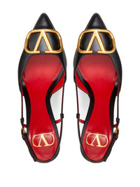 120mm VLogo Signature slingback pumps These Valentino Garavani pumps celebrate one of the maison's most famous calling cards. Crafted from smooth black leather, they're adorned with VLogo Signature plaques in polished gold-tone contrast at the toes. Highlights - Black - Calf leather - Vlogo signature - Buckle-fastening ankle strap - Pointed toe - Platform sole - 120mm stiletto heel - Branded leather insole Made in Italy Composition Outer: Calf Leather 100%, Metal 100% Sole: Calf Leather 100% Lining: Goat Skin 100% Washing instructions Read Manufacturer Guidelines