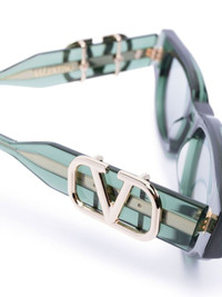 VLogo Signature cat-eye sunglasses The VLogo Signature, one of Valentino's most famed motifs, takes focus in these sunglasses. Handcrafted in Japan, this green pair is presented in a cat-eye frame and features UV-protective grey tinted lenses. Imported Composition Acetate 100% SIZE & FIT Measurement Arm Length 5.82 in(14.8 cm) Bridge Width 0.7 in(1.8 cm) Lens Diameter 1.96 in(5 cm) Total Width 5.59 in(14.2 cm)