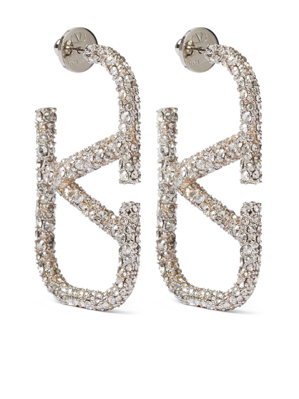 VLogo Signature crystal earrings Adorned with delicate crystals, these silver-tone earrings from Valentino Garavani take the shape of the iconic VLogo motif, first introduced during the house's Sala Bianca show in 1968. Highlights - Silver-tone - Crystal embellishment - Vlogo signature - Butterfly clasp fastening - For pierced ears - These earrings come as a pair. Made in Italy SIZE & FIT Measurement HEIGHT 1.77 in(4.5 cm) WIDTH 1.1 in(2.8 cm) Washing instructions Read Manufacturer Guidelines