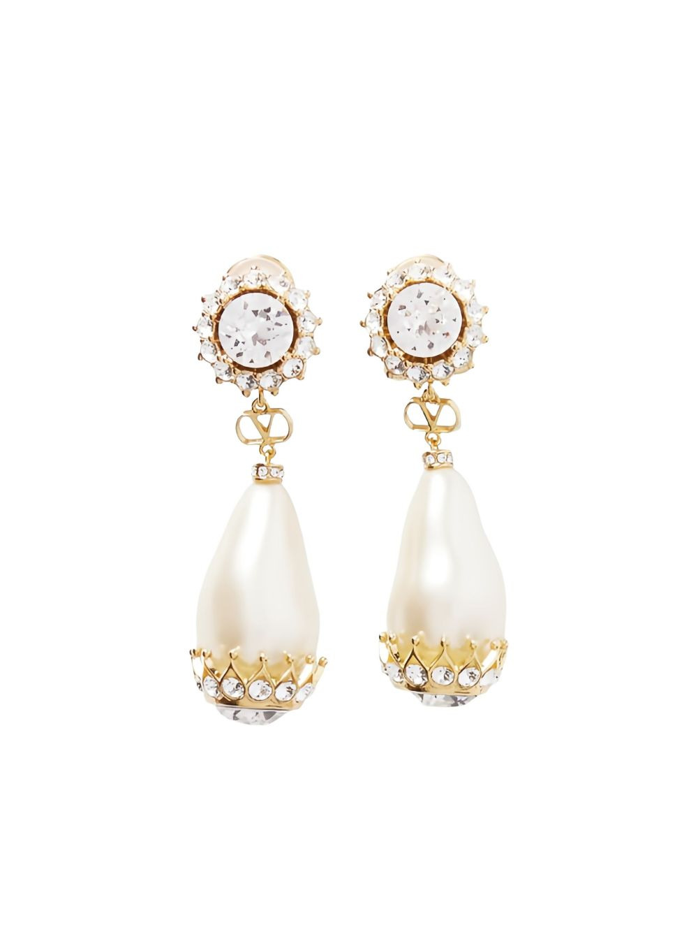 VLogo Signature crystal-embellished pearl earrings Highlights - White - Gold-tone - Crystal embellishment - Clip fastening - These earrings come as a pair. Made in Italy