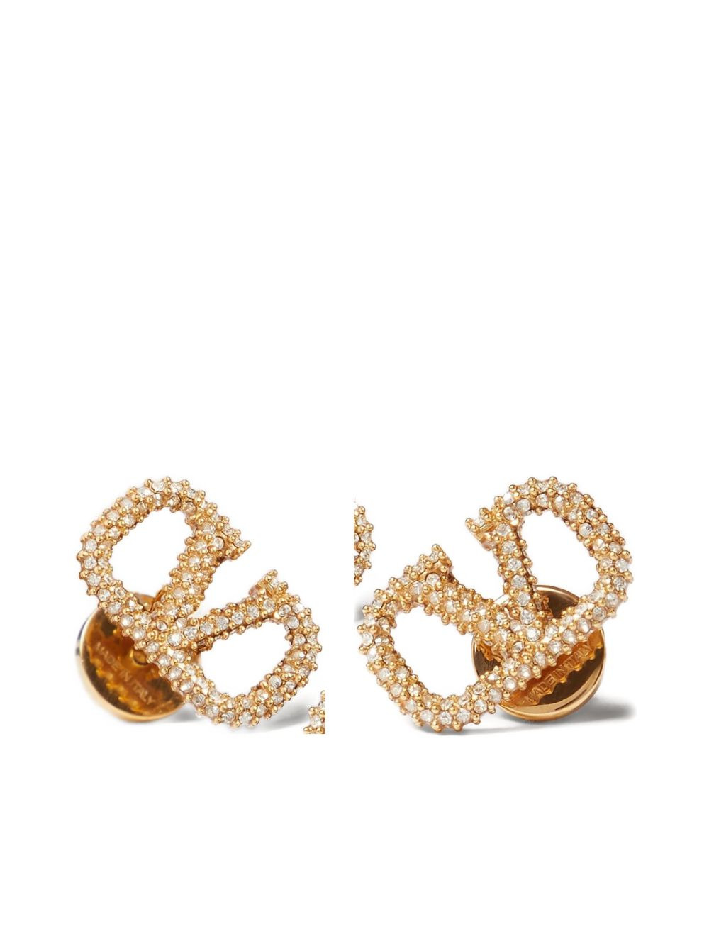 VLogo Signature crystal-embellished earrings Valentino Garavani's VLogo debuted at the Sala Bianca show in 1968 and has since become a house icon. Constructed from gold-tone brass, these stud earrings are adorned with glistening crystals, tapping into the brand’s elegant aesthetic. Highlights - Gold-tone - Vlogo signature - Swarovski crystal embellishment - Post back closure - For pierced ears - These earrings come as a pair. Made in Italy SIZE & FIT Measurement HEIGHT 0.39 in(1 cm) WIDTH 0.62 in(1.6 cm)