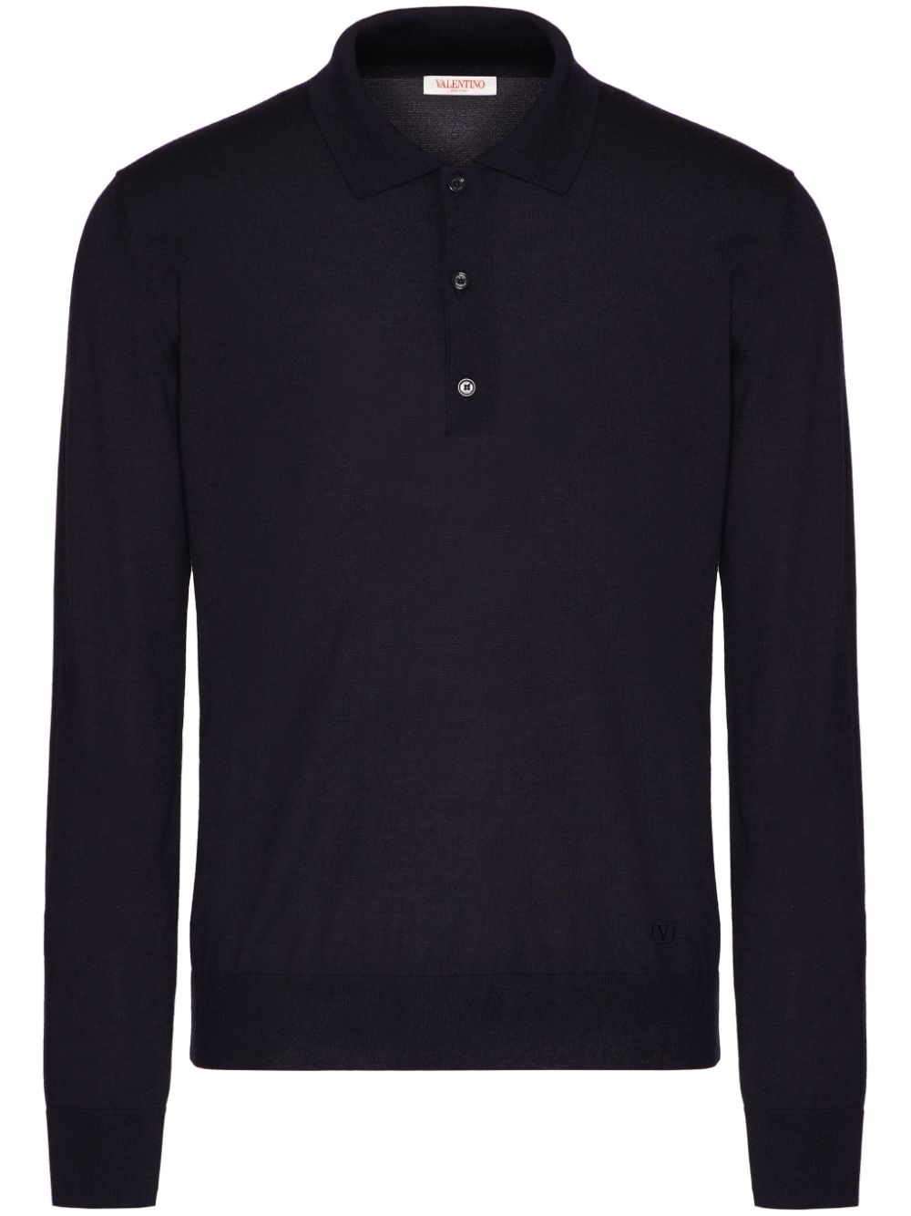 LONG-SLEEVE CASHMERE AND SILK POLO SHIRT WITH VLOGO SIGNATURE EMBROIDERY