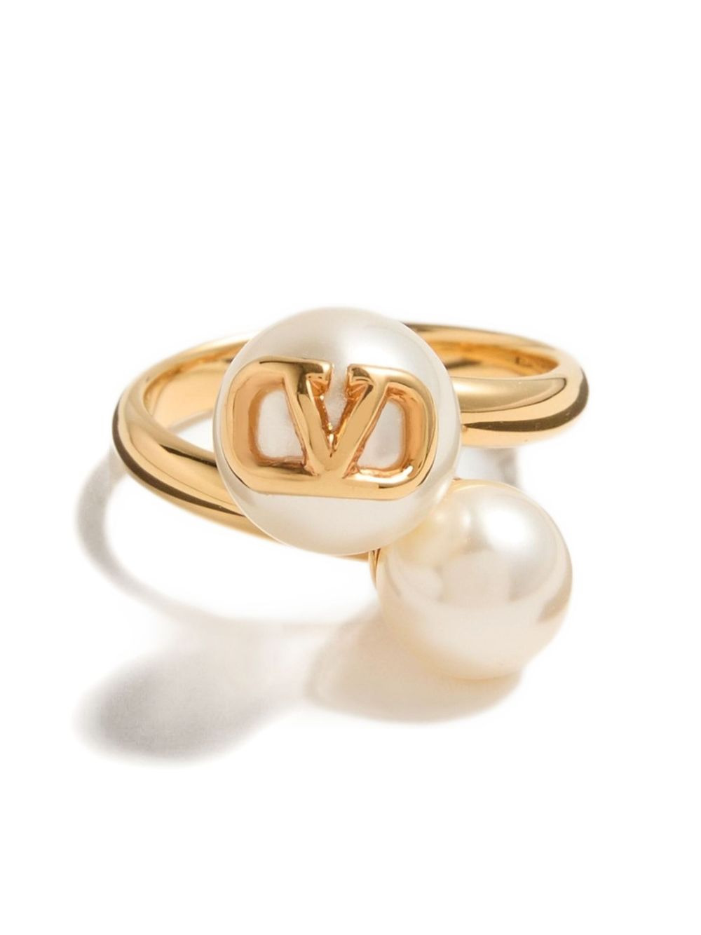 VLogo Signature pearl ring Highlights - Gold-tone - Polished finish - Vlogo signature - Thin band - Normal everyday use and external agents may reduce the lustre of gemstones and gold surfaces. to maintain, use specific, non-abrasive products specially meant for cleaning jewellery. Made in Italy